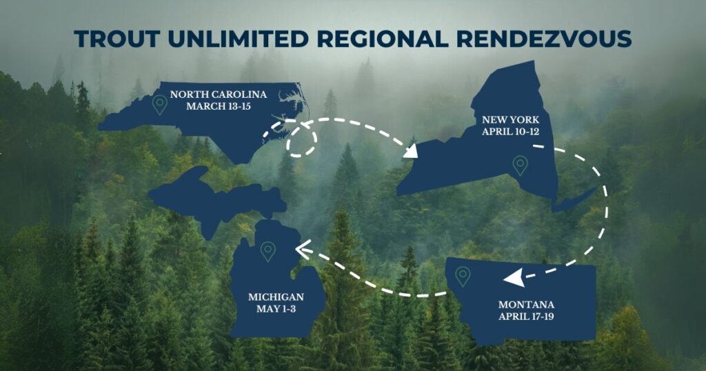 TU Volunteer Operations staff is thrilled to announce the 2026 Regional Rendezvous lineup—a series of powerful gatherings for fly fishing conservationists and TU leaders. Mark your calendars and purchase your tickets—some venues have limited on-site lodging!