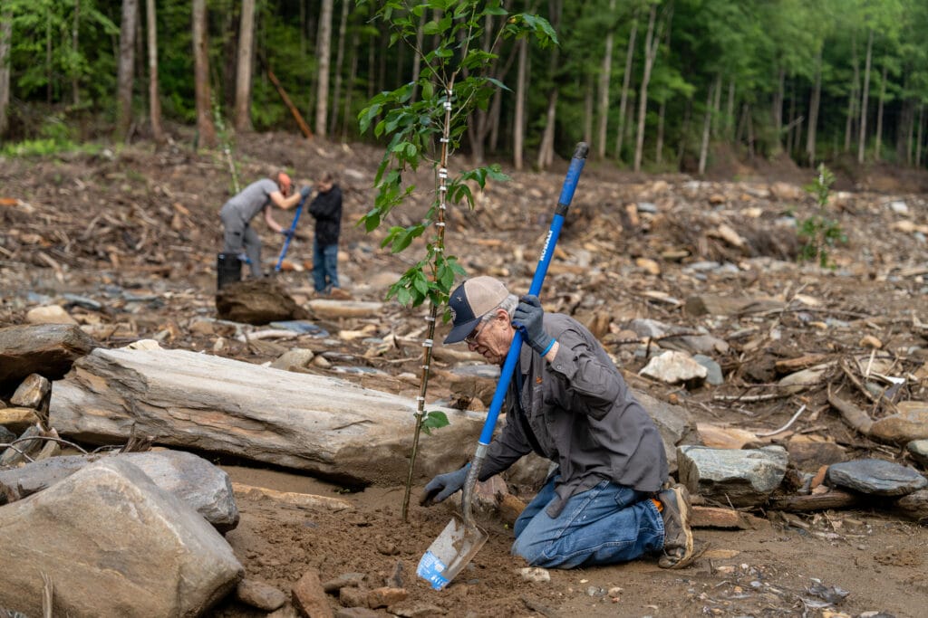 A grant from the Arbor Day Foundation, with support from Truist Charitable Fund, will help purchase more than 7,000 additional trees. In the spring, TU will hold its Southeast Regional Rendezvous in Black Mountain, with a large tree-planting event planned for the Sunday of that weekend. These trees will help restore riparian buffers and make floodplains more resilient to future flooding.