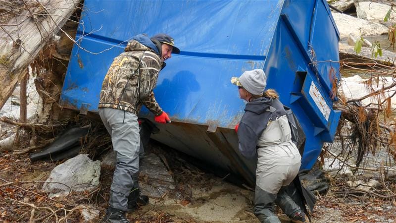 A member of Trout Unlimited’s Land O’ Sky Chapter, Hawthorne said he and chapter members spent the days immediately after the storm working on pressing needs in the town of Marshall, which suffered complete inundation by flood waters from the French Broad.