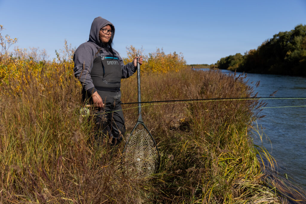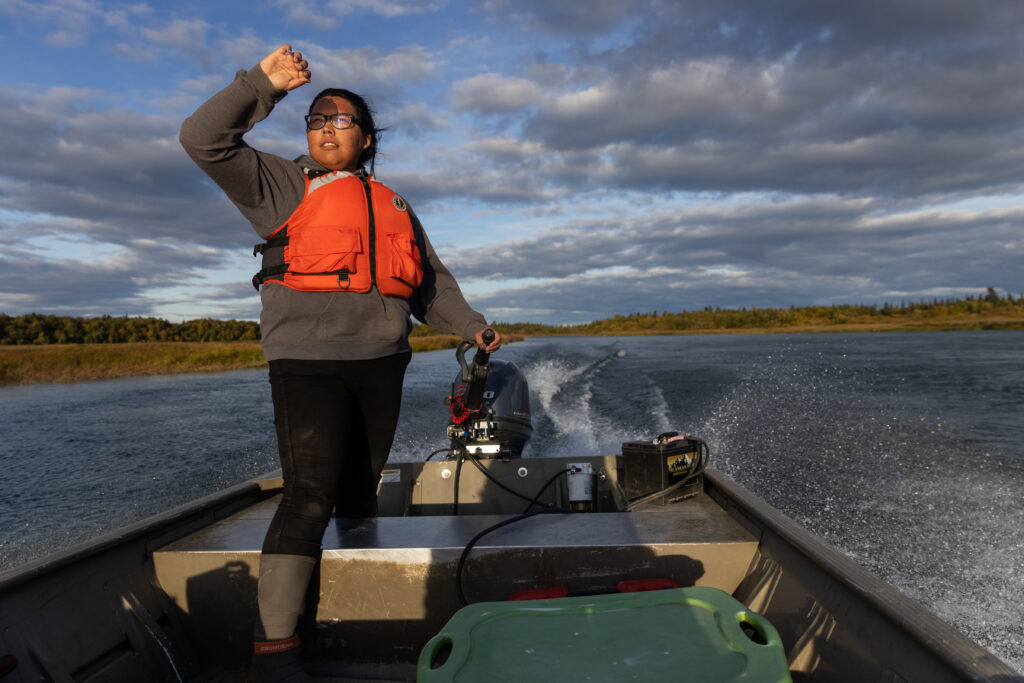Fly fishing is just one of the many ways Taty connects with the land and water around her. Subsistence hunting is central to life in Igiugig, and Taty harvested her first moose this fall. In keeping with Native tradition, the first of any species must be given away. “I gave the moose to the school, and the kids learned how to process it,” Taty explained, “then it will feed them all throughout the school year.” Some of her moose meat was also donated to Western Alaska communities hit hard by Typhoon Halong, extending the harvest’s impact far beyond Igiugig.
