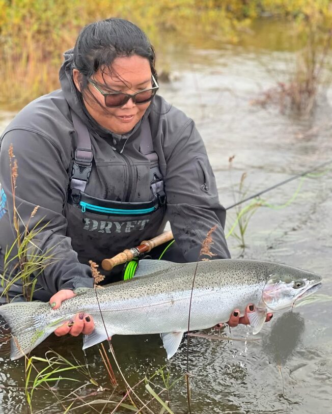 Taty grew up harvesting salmon for her family and working at a commercial fish processing plant, but sportfishing didn’t become part of her life until she attended the Bristol Bay Fly Fishing and Guide Academy in 2015. This is a week-long, intensive course that aims to inspire Bristol Bay youth to pursue careers in the sportfishing and tourism industries.
