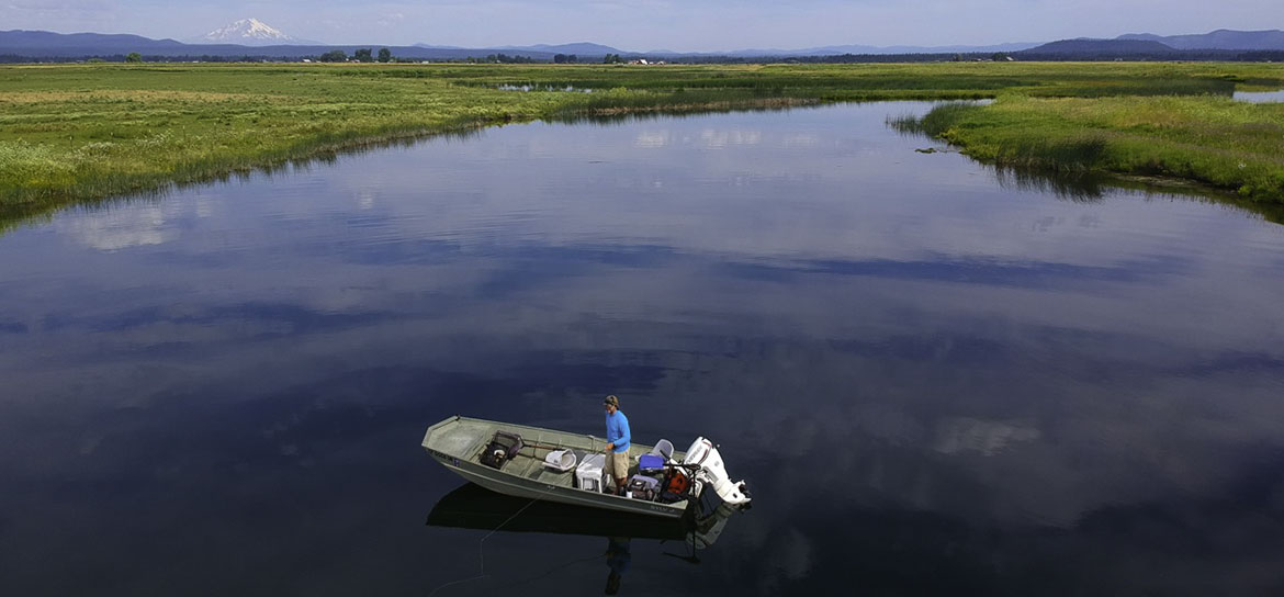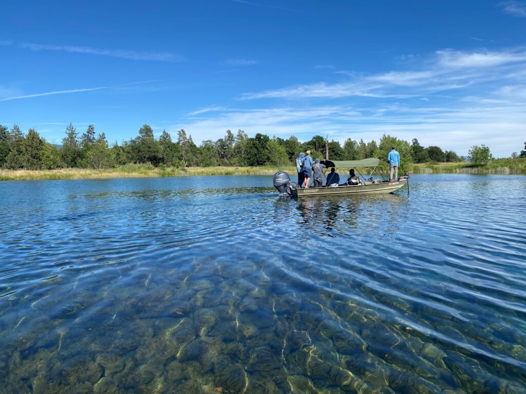 That afternoon, as we checked out the springs complex at Ahjumawi Lava Springs State Park – the place where most of the water collected and filtered by the Sáttítla Highlands to the north comes to the surface – Grizzly Dan plunged in on the downstream side of a neck between two of the giant springs, where the water flowed from one to the other at 200 cubic feet per second or more.