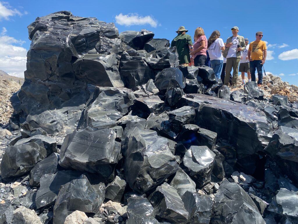 Later that August day when I followed the music of spring water, our little tour had close encounters with some of the other unusual qualities that make the Sáttítla Highlands worthy of national monument designation. The moonscape of the Glass Mountain area, for example, where acres and acres of the largest vein of obsidian imaginable are exposed, contorted into thrones and gargoyles of glistening black rock so razor-edged you have to be careful, should you try to run your hand over some of its facets, that you don’t slice a fingertip.