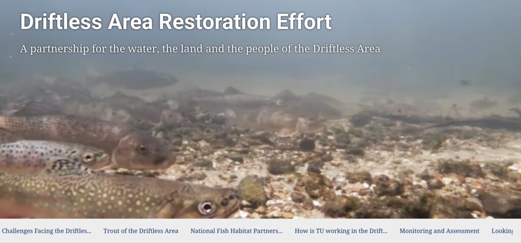 Trout Unlimited launched the Driftless Area Restoration Effort in 2003 as part of its Home Rivers Initiative. It became a pilot partnership under the National Fish Habitat Partnership in 2005 and the program was formally recognized as a full Fish Habitat Partnership in 2007.