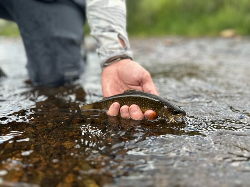 The next morning, we spent a couple hours on the Eagle, where chunky wild rainbows slashed at skated caddis with reckless abandon. Then we headed high into the backcountry for the closest thing to Eastern fishing we experienced. The water was small, as were the browns and brookies. The setting? Spectacular.