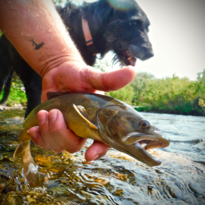 Pheobe checks out a backcountry bull trout caught on public lands in Idaho. I’ve had the good fortune of fishing with some great dogs over the years, and while sometimes it can be a burden, a good fishing dog is about the best companion an angler can have on the water. My old mutt Phoebe…