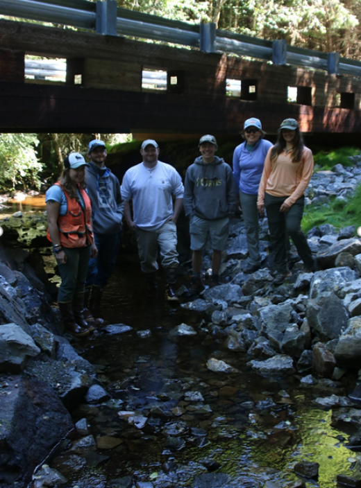 Luckily, one of the projects they’ve been working on was completed just before the Five Rivers Odyssey team arrived to Prince of Wales Island, and they were super excited to show it to us. The two-week project involved the removal of an undersized stream culvert and replacing it with a bridge. This allows the stream to flow at a natural pace and create suitable habitat for fish to hold. Before the bridge was built, the culvert was essentially turning the stream into a firehose and was blasting everything out on the other side. If the stream bedrock gets blown out and large woody debris cannot hold its place, the salmon that are returning from the sea will not be able to reach their spawning beds.