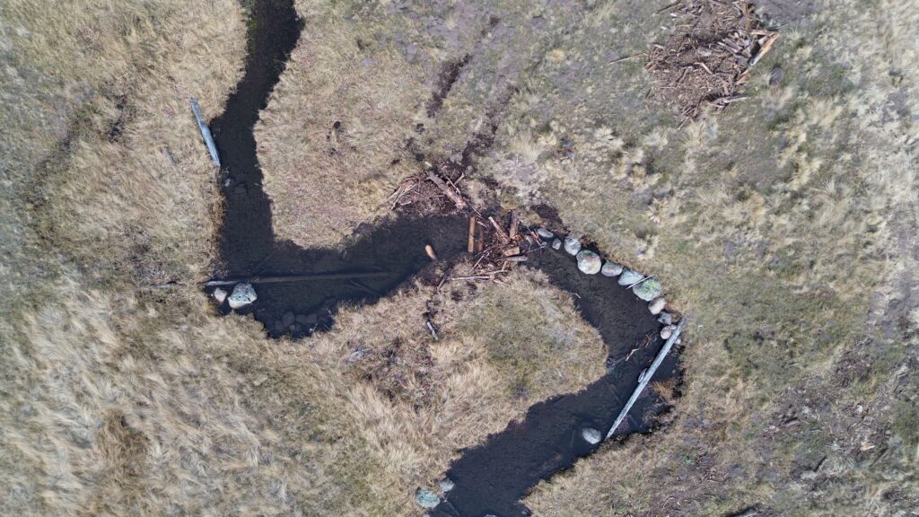 TU is currently working through the first phase of the project, which includes installing more than 200 of these wood log jam structures – with materials sourced from hazardous fuels reduction projects – and 70 sod plugs to slow down the water flowing through the meadow so it can once again meander, spread out on the landscape, and replenish groundwater levels. The next phase will include installing an elk exclosure around the whole meadow before finishing the project by replanting all native riparian vegetation. Uniquely, Trout Unlimited is also measuring stream flow data in the meadow to quantify the increase in water levels once the project is complete. This is especially important for Apache trout in their historic range after being delisted from the Endangered Species Act in 2024.